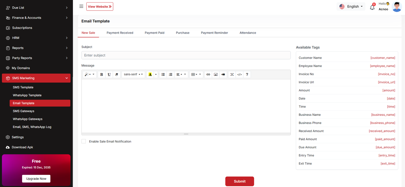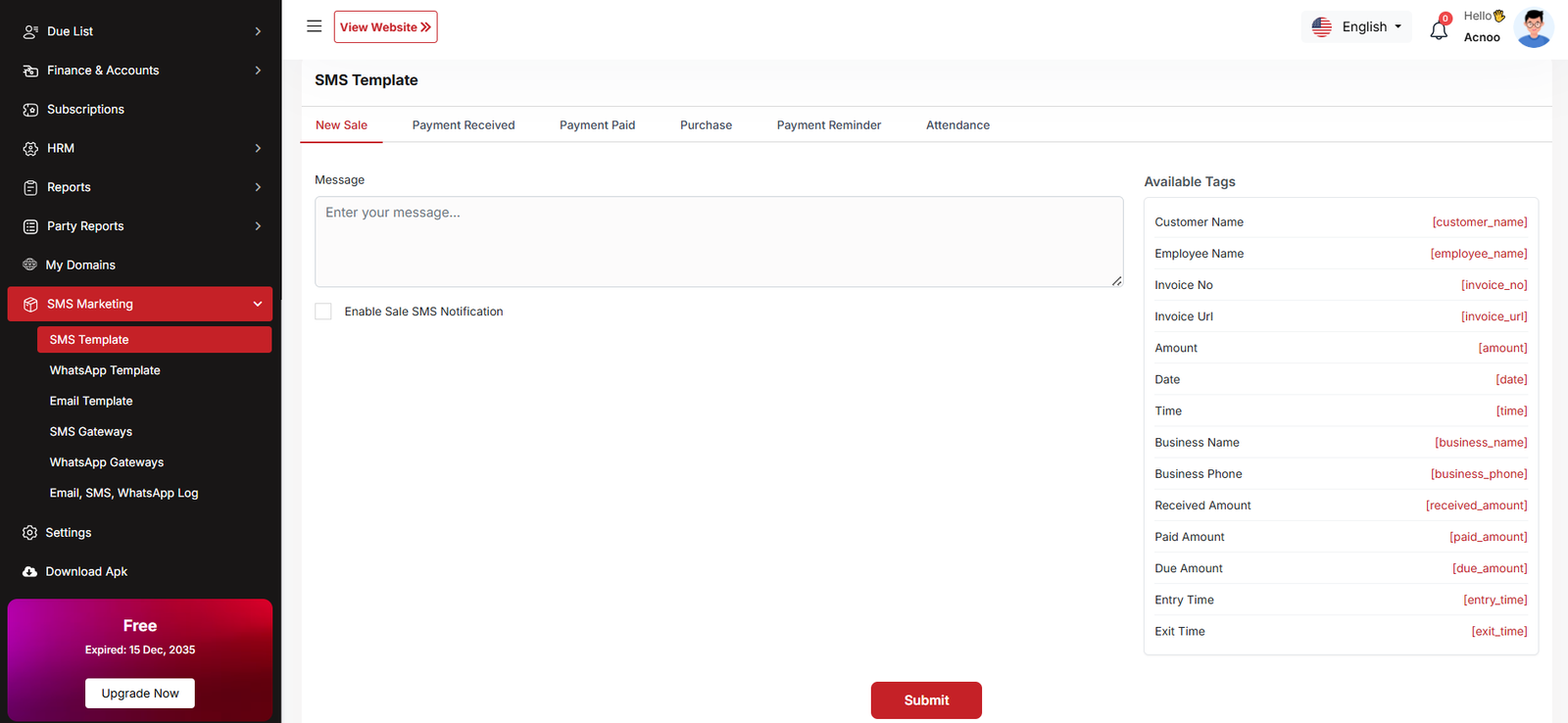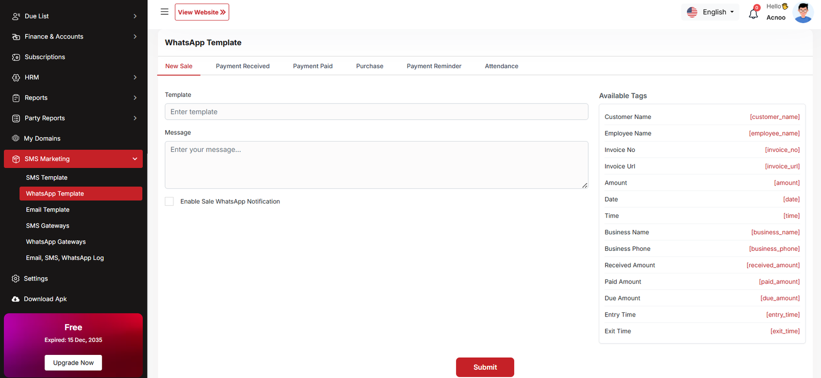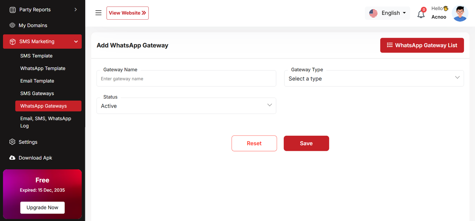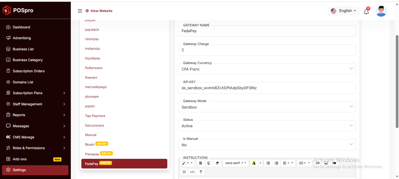 By clicking on the "Add New Business" button, you can create a new business. You will need to fill in the necessary fields. Here is the screenshot of the create business page.